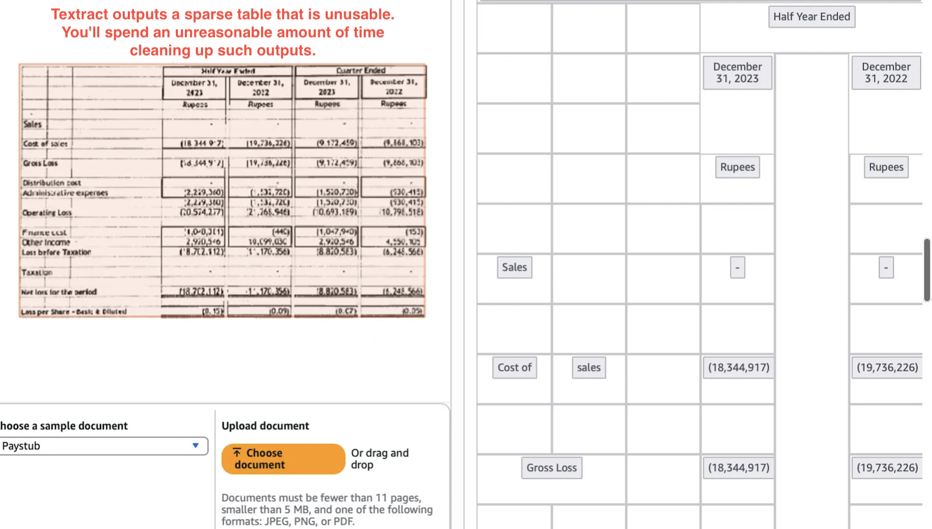 On stress testing, we can see below is an essentially lost page in textract output.