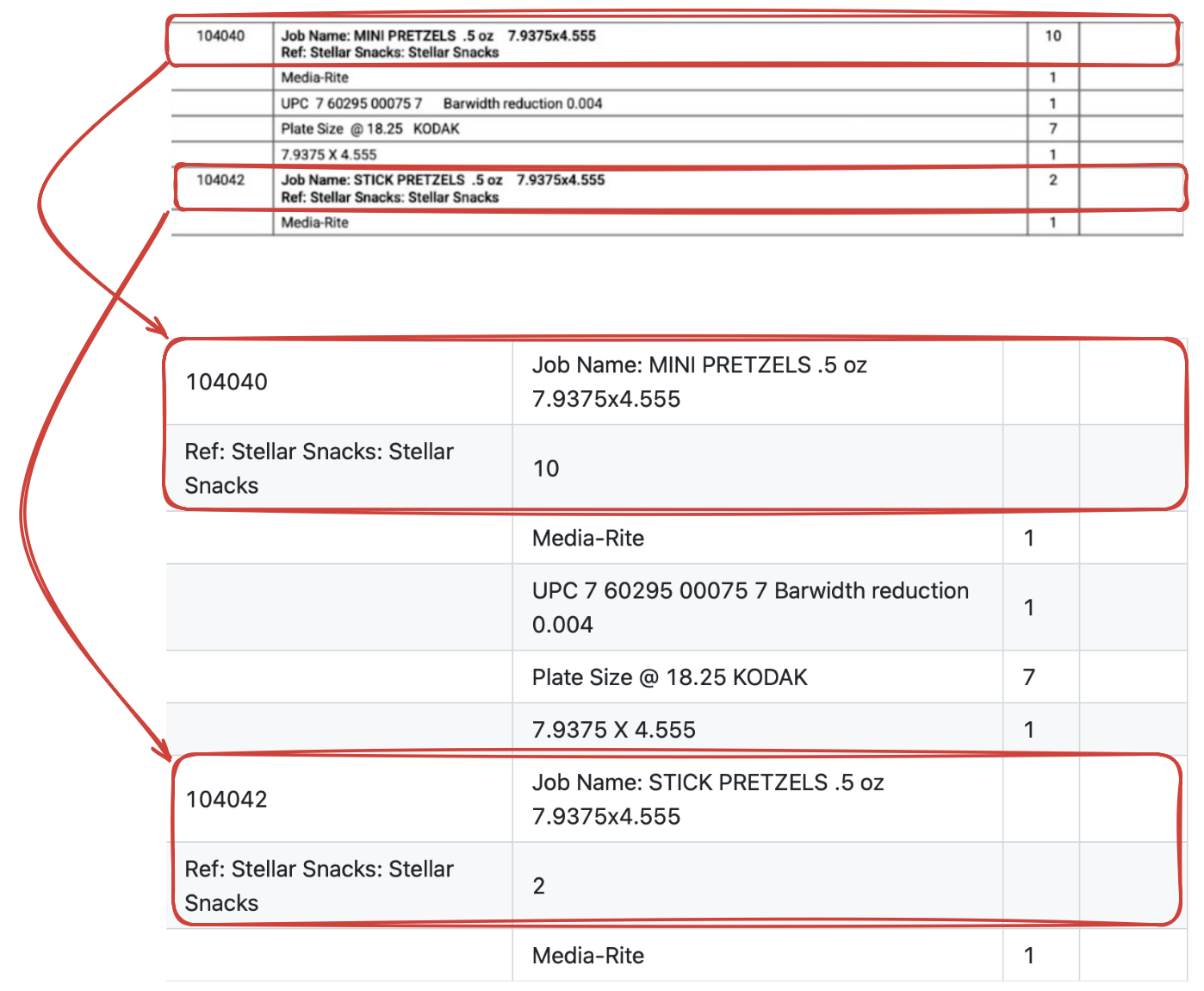 | SGI Job# | Description | Qty | PO# |