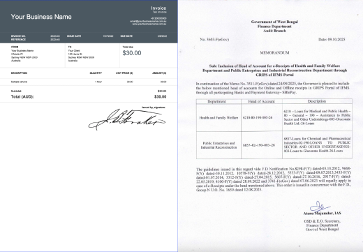 invoices. It also includes documents featuring embedded images, plots, equations, signatures, watermarks,